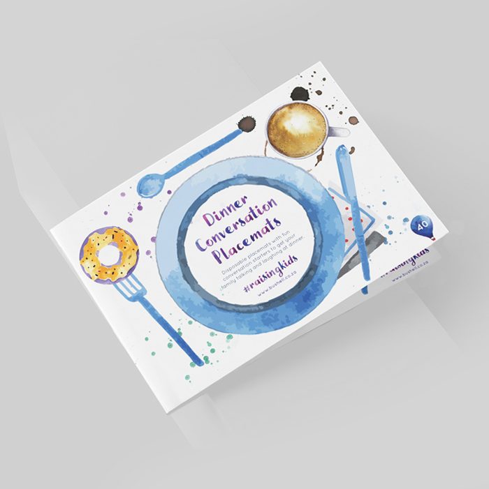 Disposable placemats with fun conversation starters to get your family talking and laughing at dinner. Dinner conversations are the best way to get to know your family and grow their emotional intelligence.